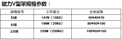 磁性V型架型號50B、80B、100B成對供應,帶有磁力。